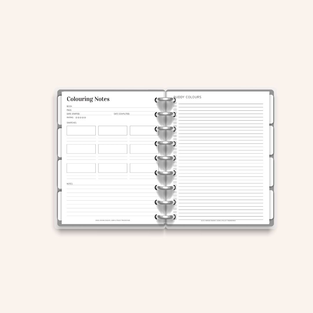 Colouring Book & Project Tracker – Printable Page Pack (11 Pages)