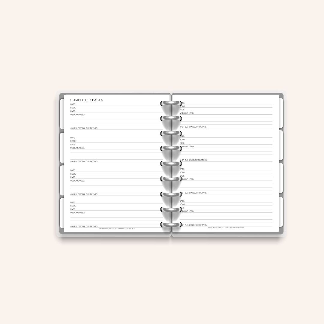 Completed Pages Tracker – document your finished works, mediums used & more