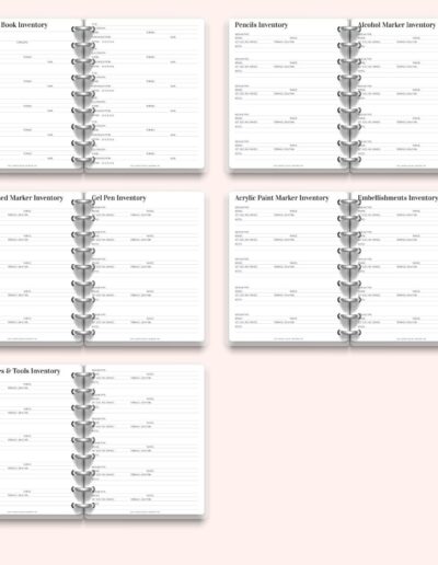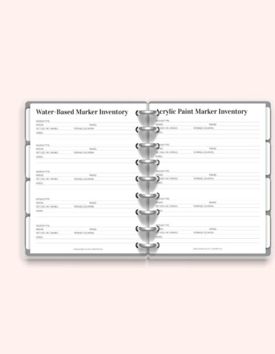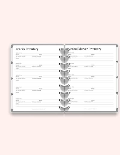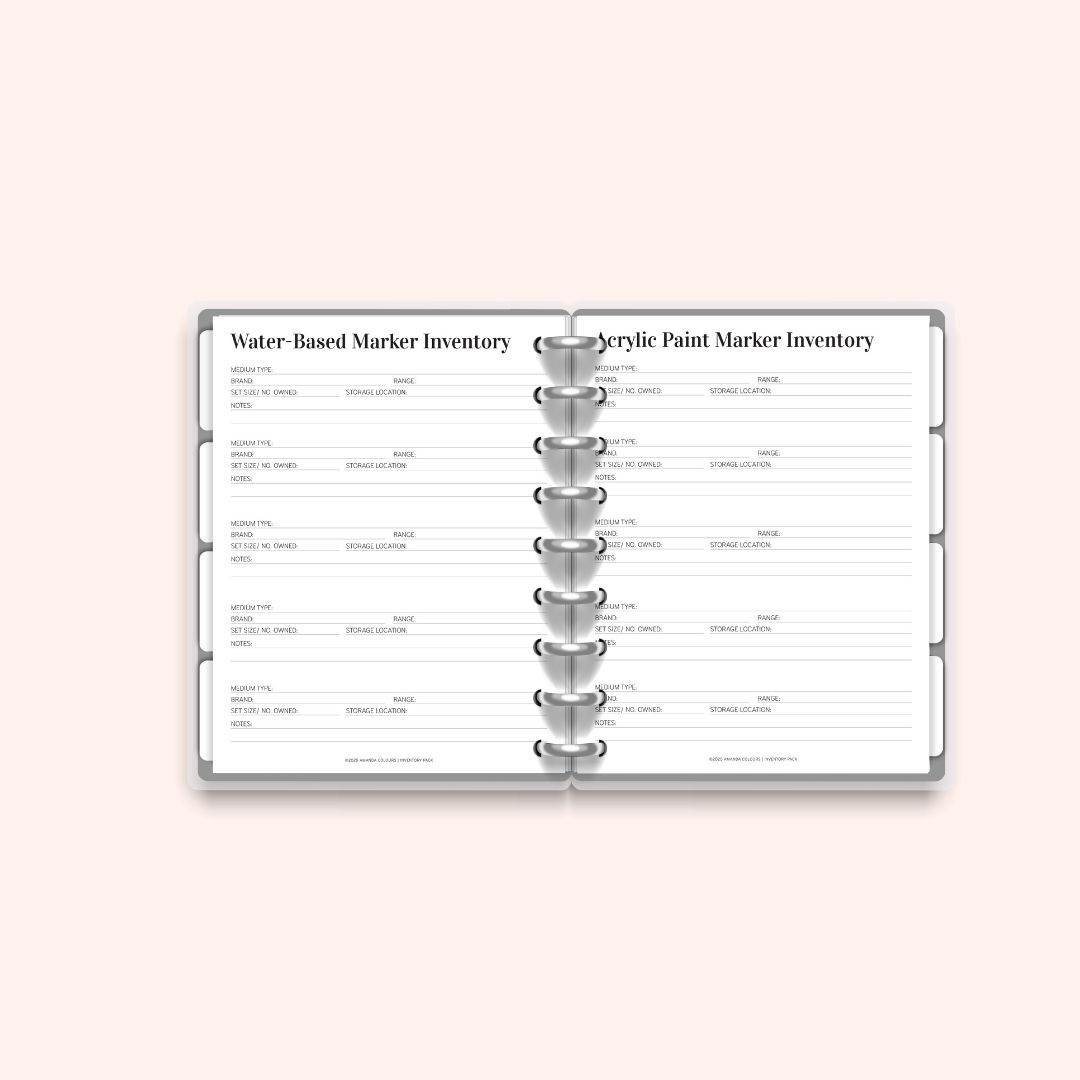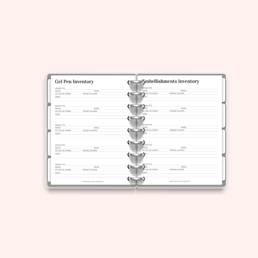 Stay on top of your books, pencils, markers, pens, and all your colouring supplies with this 10-page printable inventory pack. Includes dedicated pages for each medium and a few flexible extras. Print as often as needed and fully customise your Premium Colouring Planner. A4 and US Letter sizes included.