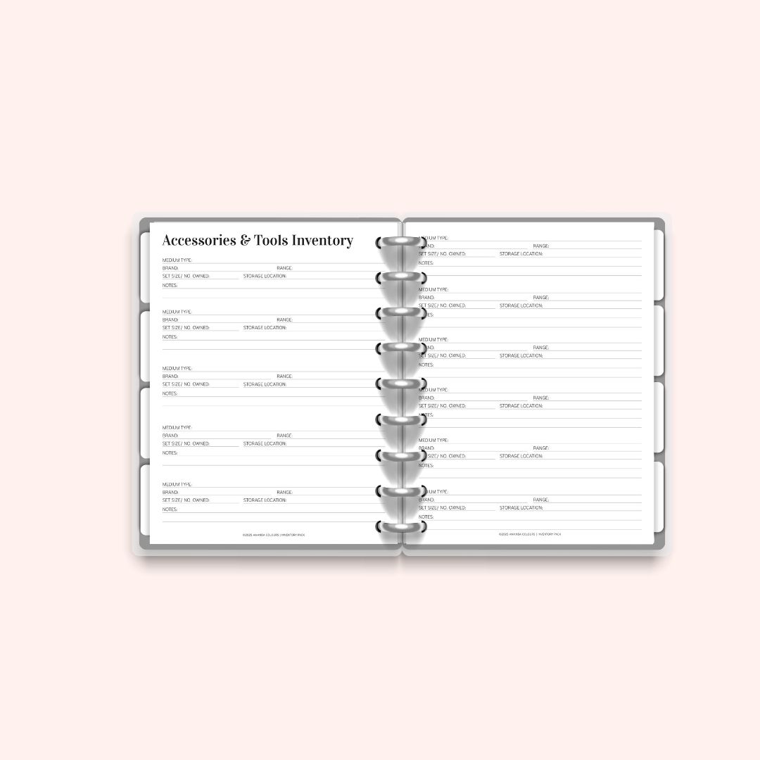 Accessories & Tools Inventory Page – keep a log of sharpeners, stencils, cases, etc.